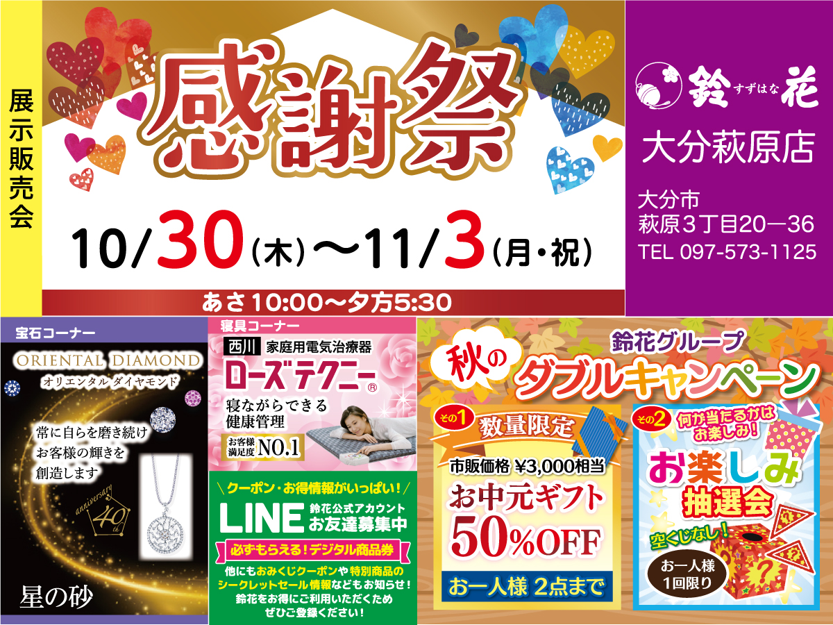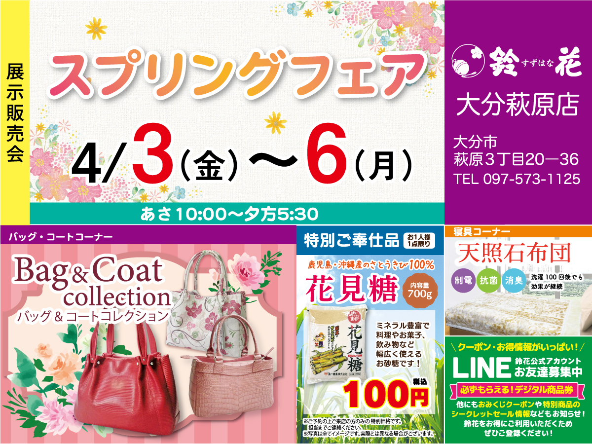 いつも鈴花大分萩原店をご愛顧いただき、誠にありがとうございます。「親切」・「丁寧」・「元気」を日々心掛けております。