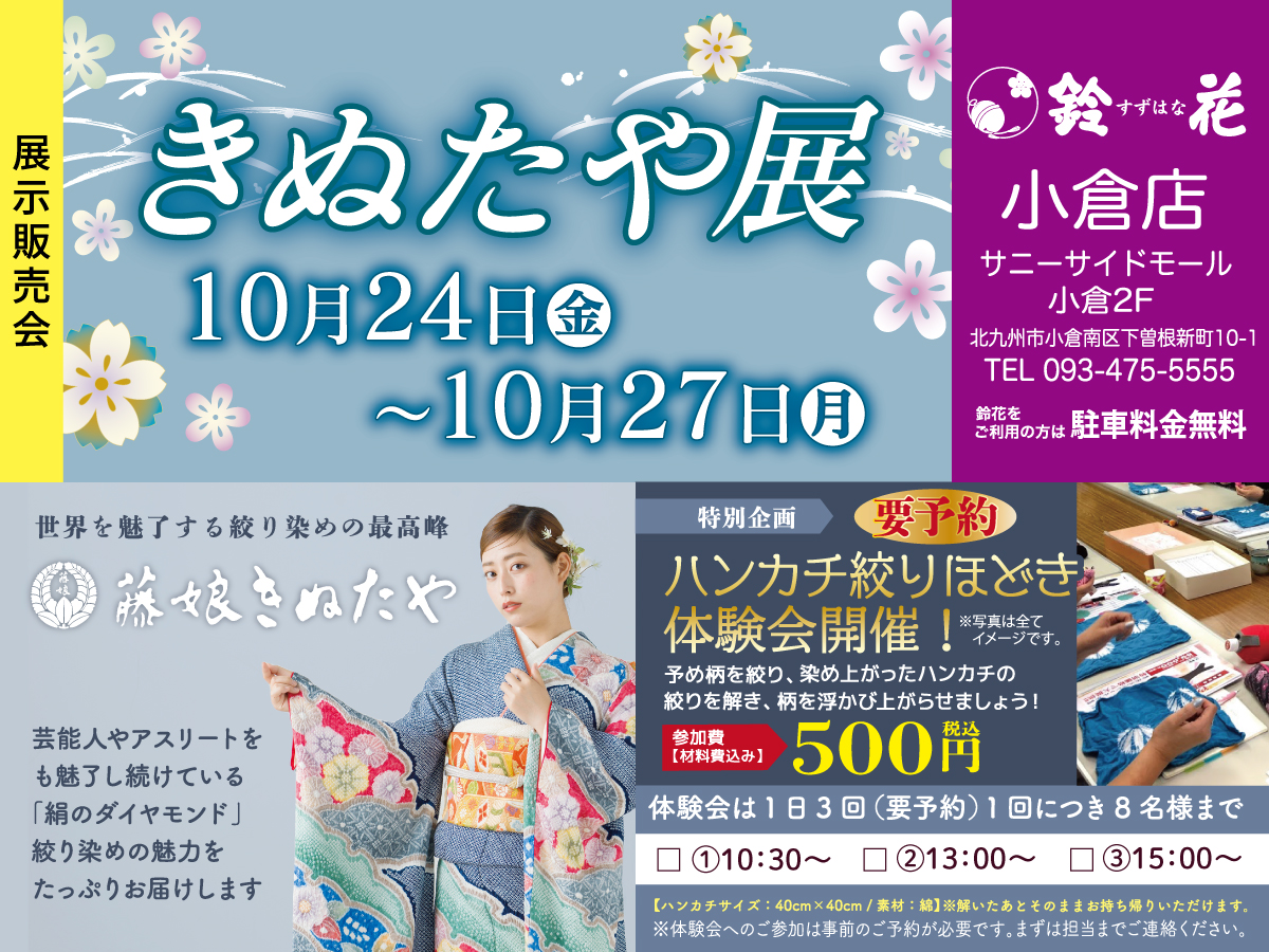 JR九州・日豊本線下曽根駅から徒歩1の「サニーサイドモールサニーサイドモール小倉」 2Fの着物屋です!