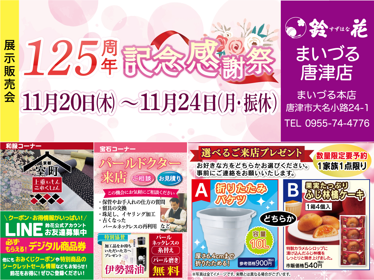 お客様の人生の大切な節目に着るきものそして、プライベートで本当に自分のために楽しんで自分らしく着るきものどちらも素敵な着物シーンです。お手伝いできたら嬉しく思います。 白水唐津店 店長 村上ゆかり